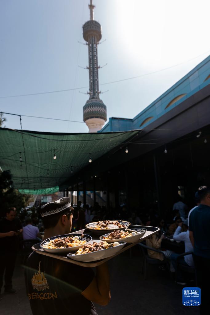 中亚抓饭中心位于塔什干电视塔附近,被人们誉为“中亚第一”抓饭中心,每天向人们提供美味的抓饭。抓饭是乌兹别克斯坦的传统美食,其主料为大米、胡萝卜、羊肉,不同地方的抓饭风味各异。抓饭的制作过程讲究严谨,主料与香料的融合令人唇齿留香,回味无穷。