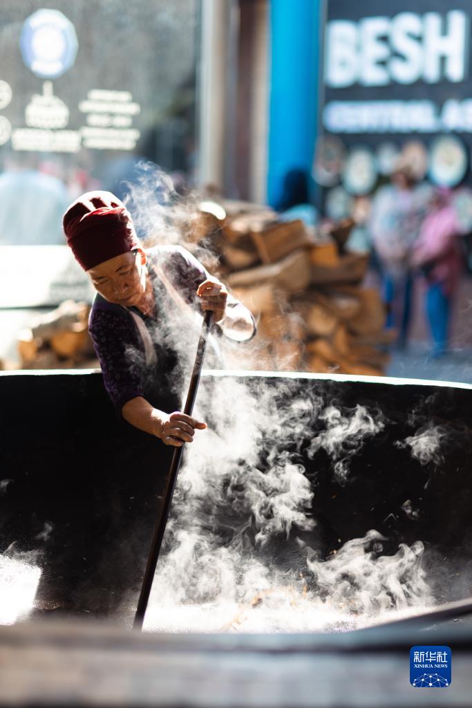 9月13日,在乌兹别克斯坦首都塔什干,工作人员清洗制作抓饭的大锅。