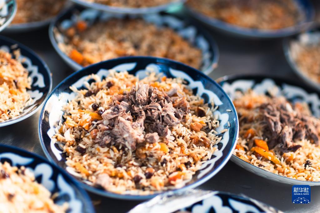 这是9月13日在乌兹别克斯坦首都塔什干拍摄的抓饭。
