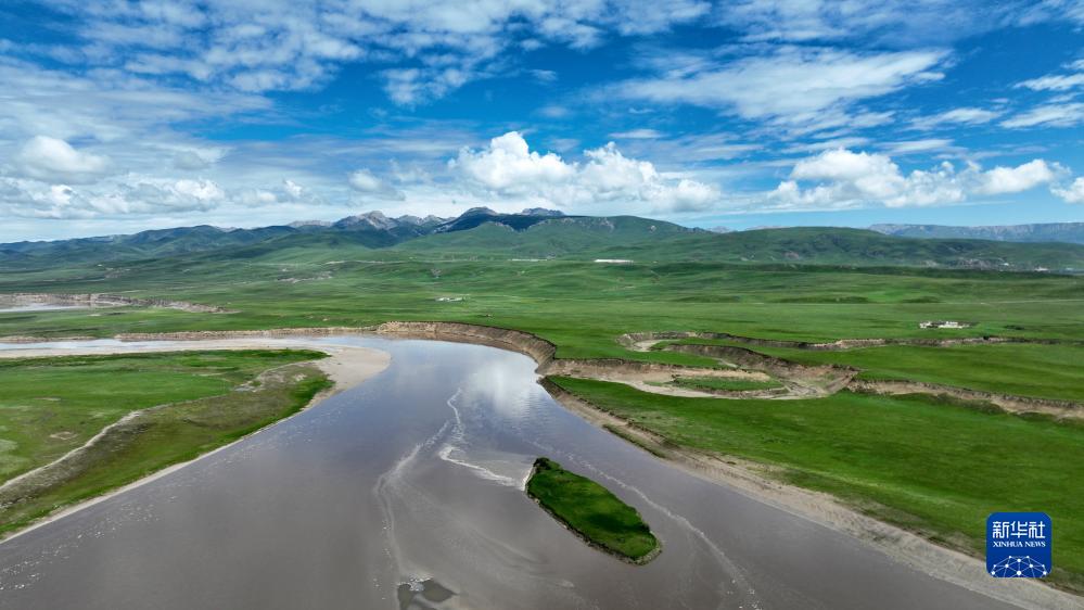 黄河流经甘南藏族自治州玛曲县境内(7月6日摄,无人机照片)。
