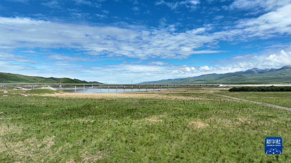 这是玛曲县城外黄河沿岸一处经过治理修复的草场(7月6日摄,无人机照片)。
