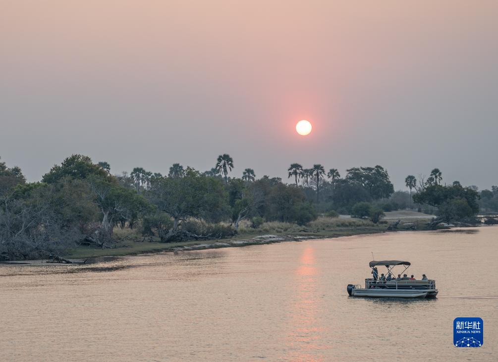 这是2023年8月23日在赞比亚拍摄的赞比西河上的游船。