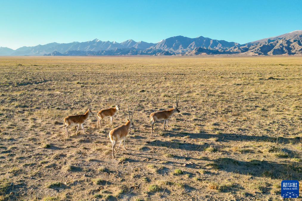 9月12日在阿尔金山国家级自然保护区拍摄的藏羚(无人机照片)。