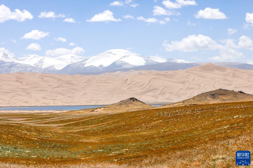 9月12日在阿尔金山国家级自然保护区拍摄的集草原、湖泊、沙漠、雪山于一体的自然景观。