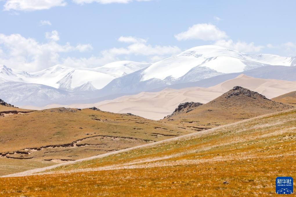9月12日在阿尔金山国家级自然保护区拍摄的集草原、沙漠、雪山于一体的自然景观。