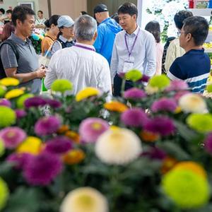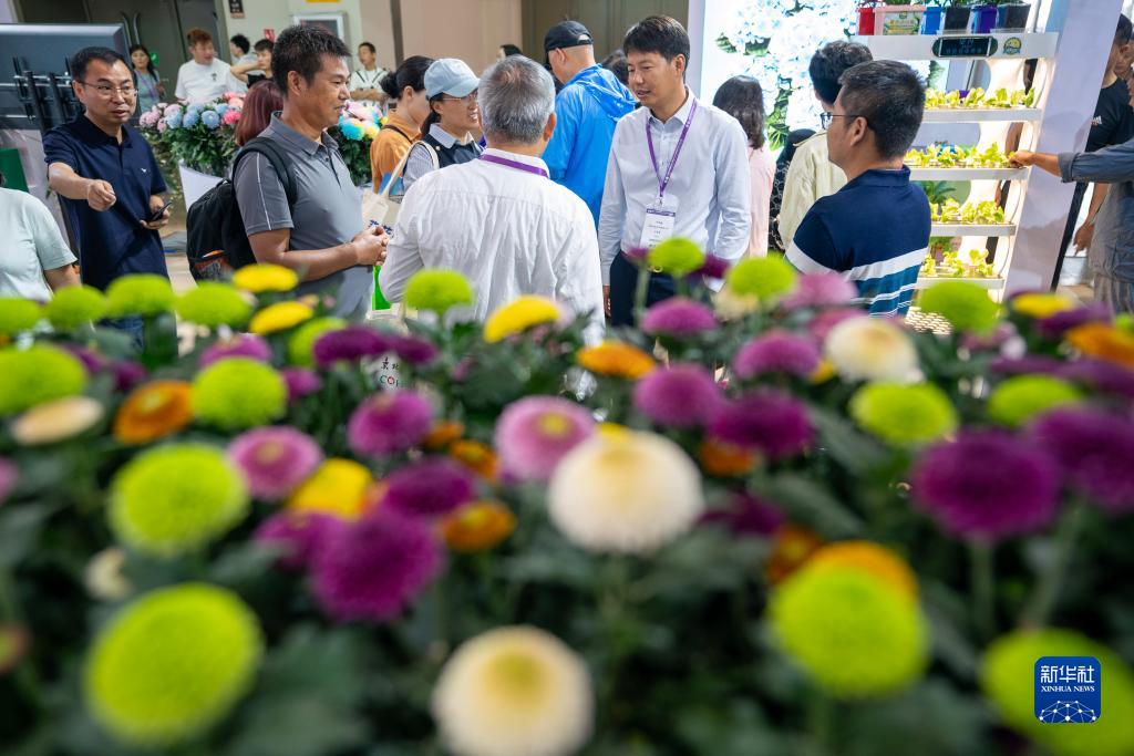 9月15日,参展商在第二十一届中国昆明国际花卉展上洽谈业务。