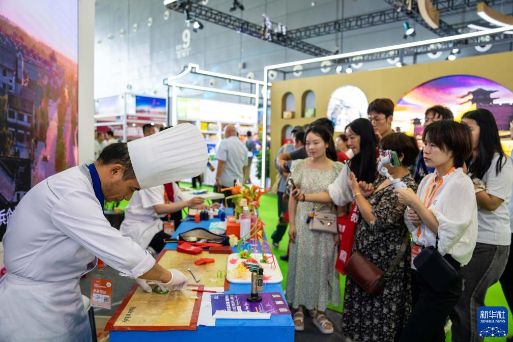 9月15日,在长沙国际会展中心,参展商在展示厨艺。