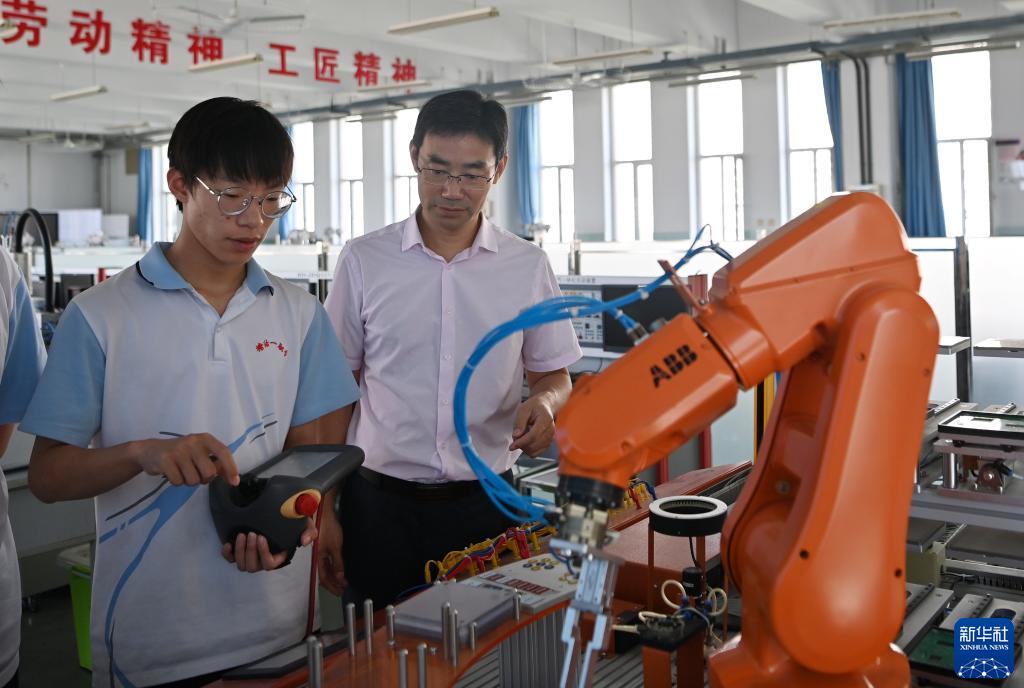 在日常教学中,他经常手把手指导学生操作设备、提高职业技能。前不久,翟津获评2023年全国教书育人楷模。翟津说:“我在早期教学时,以培养产线上的熟练工为主,但现在更多地是要培养智能制造应用技术领域的高素质技能人才,为推动现代职业教育高质量发展贡献力量。”