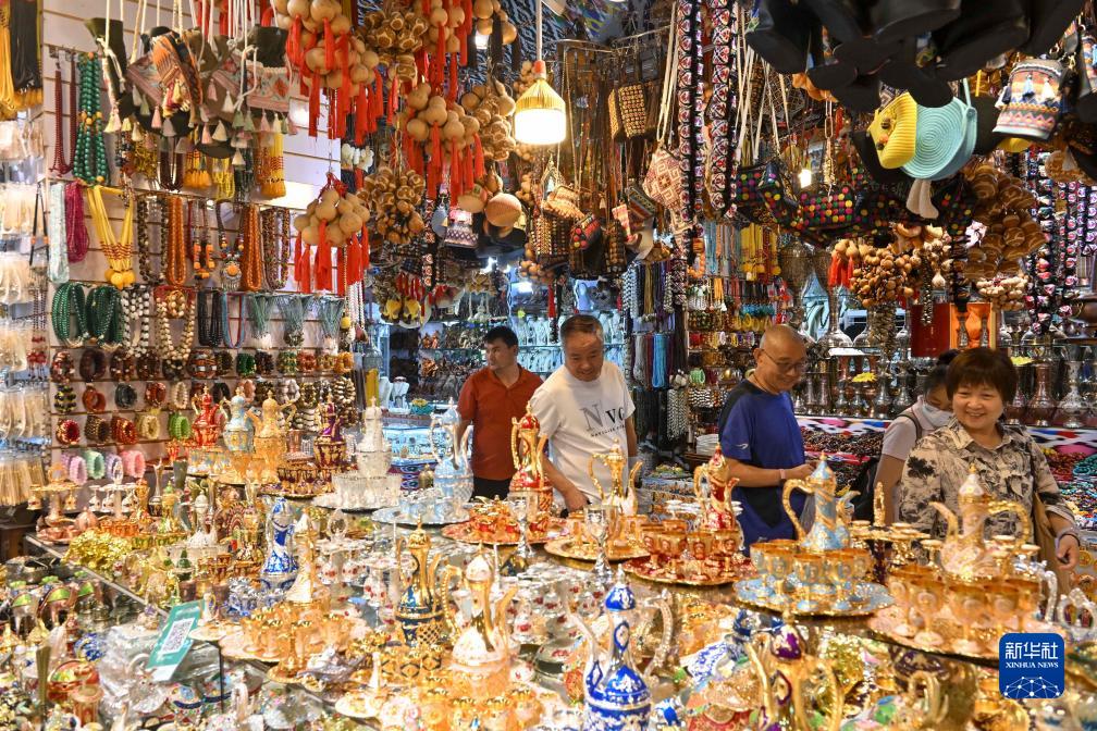 9月14日晚,游客在新疆喀什古城景区游览购物。