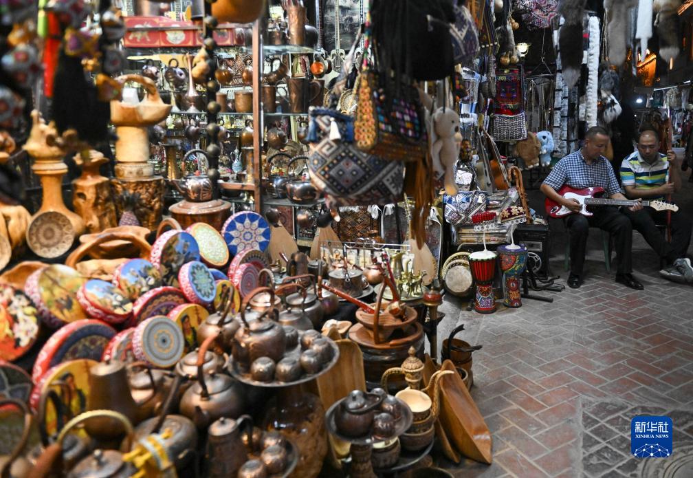 这是9月13日在新疆喀什古城景区拍摄的一处摊位。