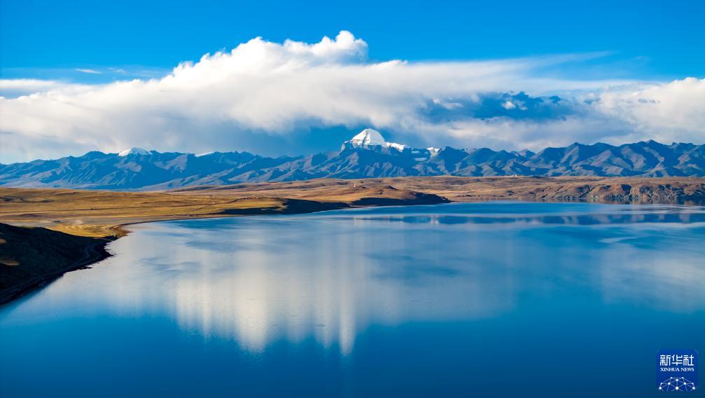 普兰县境内的玛旁雍错,远处雪山为冈仁波齐(无人机照片,9月13日摄)。