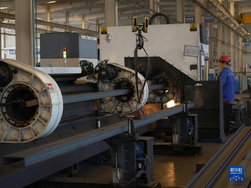 9月15日,工作人员在河北科源智能电气有限公司生产车间操控设备对型材进行激光切割。