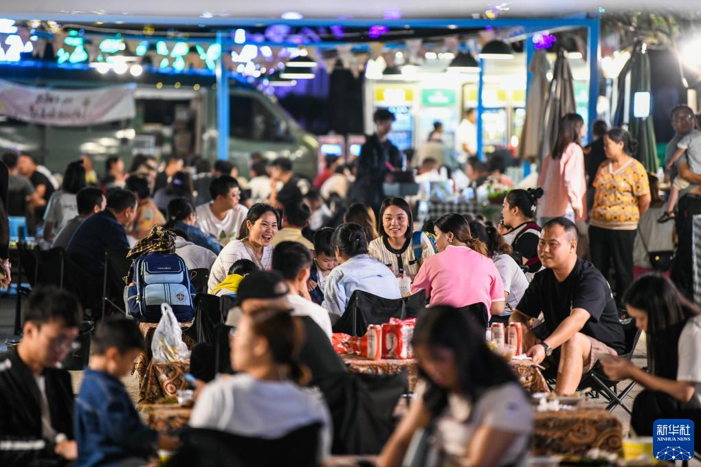 9月14日,游客和市民在兴义市马岭河夜间消费聚集区吃夜宵。