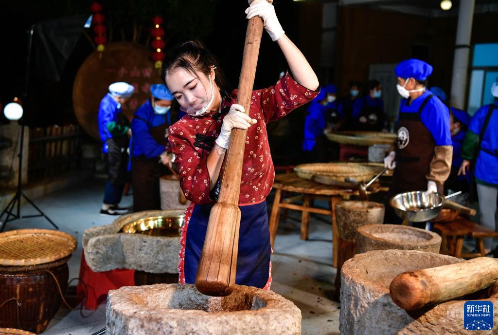 9月14日,村民在兴义市万峰林街道的“乡愁集市”手工制作糊辣椒面。