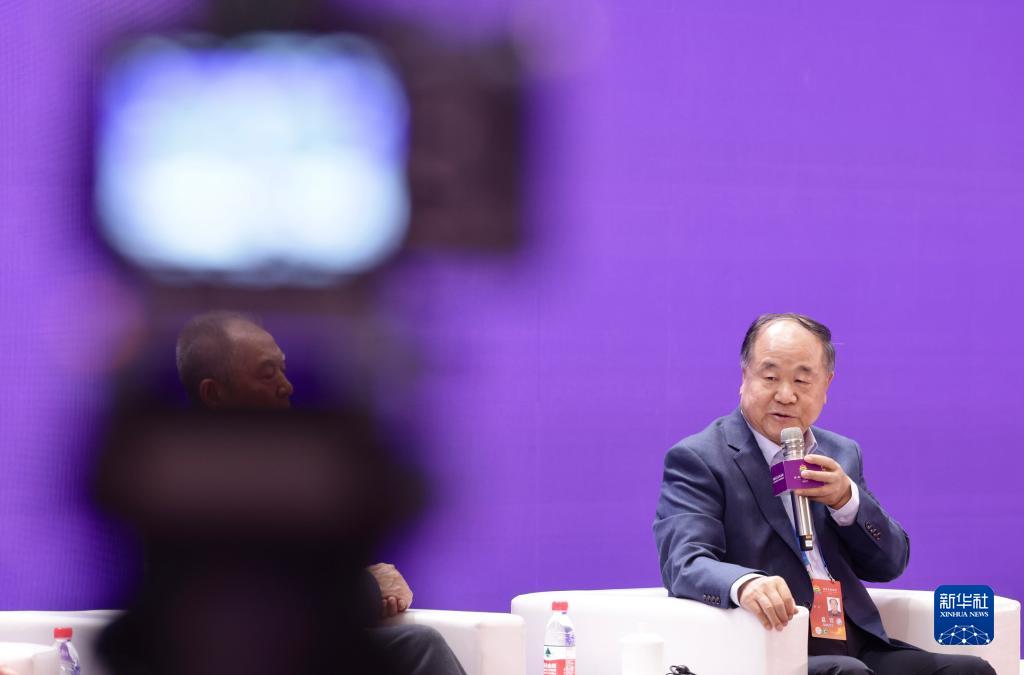 9月15日,作家莫言在“以文化人:文艺价值与社会生活”平行论坛的“中国文学与世界对话”圆桌对话现场发言。