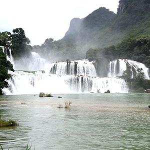 9月15日,游客在中越德天(板约)瀑布跨境旅游合作区游玩。