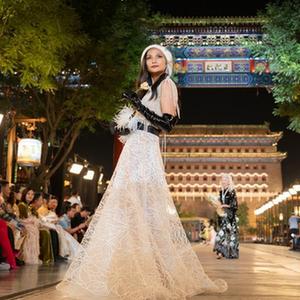 9月15日晚,2024春夏北京时装周开幕式在北京前门大街举行,在开幕式上,劳伦斯·许携高级定制时装上演“壮美中轴线”时尚大秀。