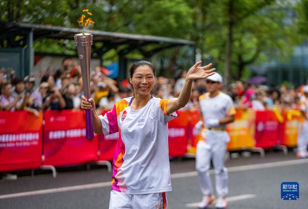 当日,杭州亚运会火炬在浙江省丽水传递。