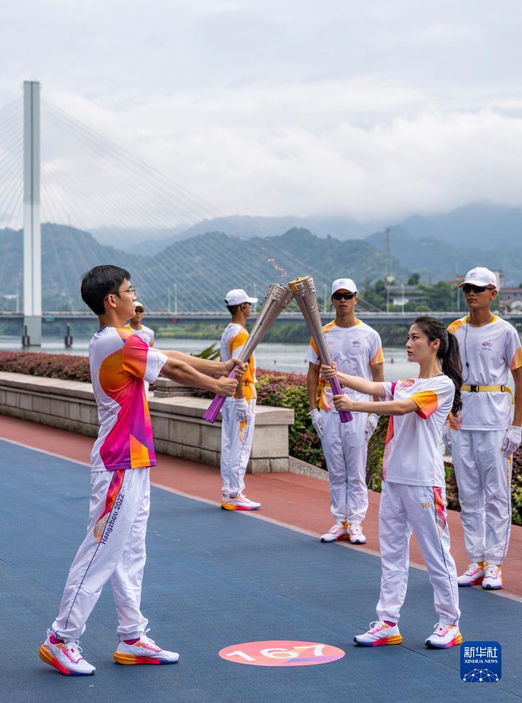 当日,杭州亚运会火炬在浙江省丽水传递。