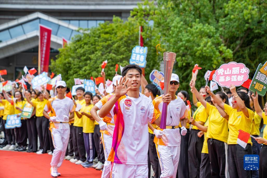 当日,杭州亚运会火炬在浙江省丽水传递。