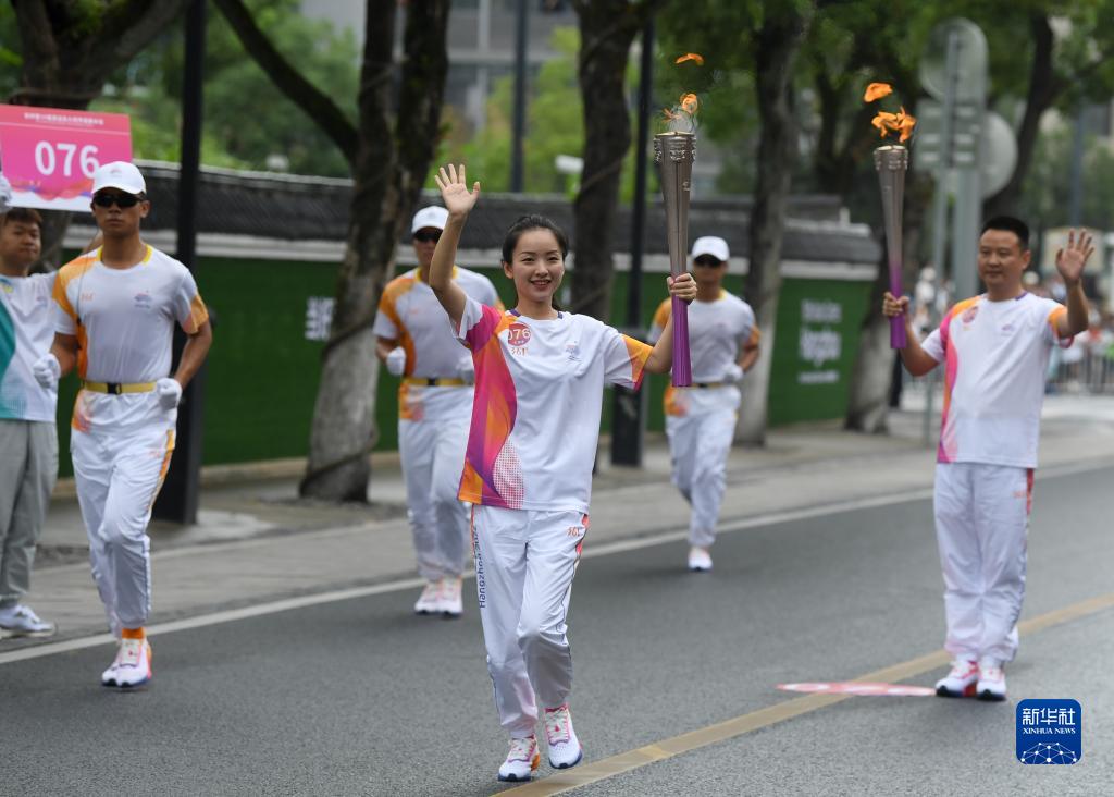 当日,杭州亚运会火炬在浙江省丽水传递。