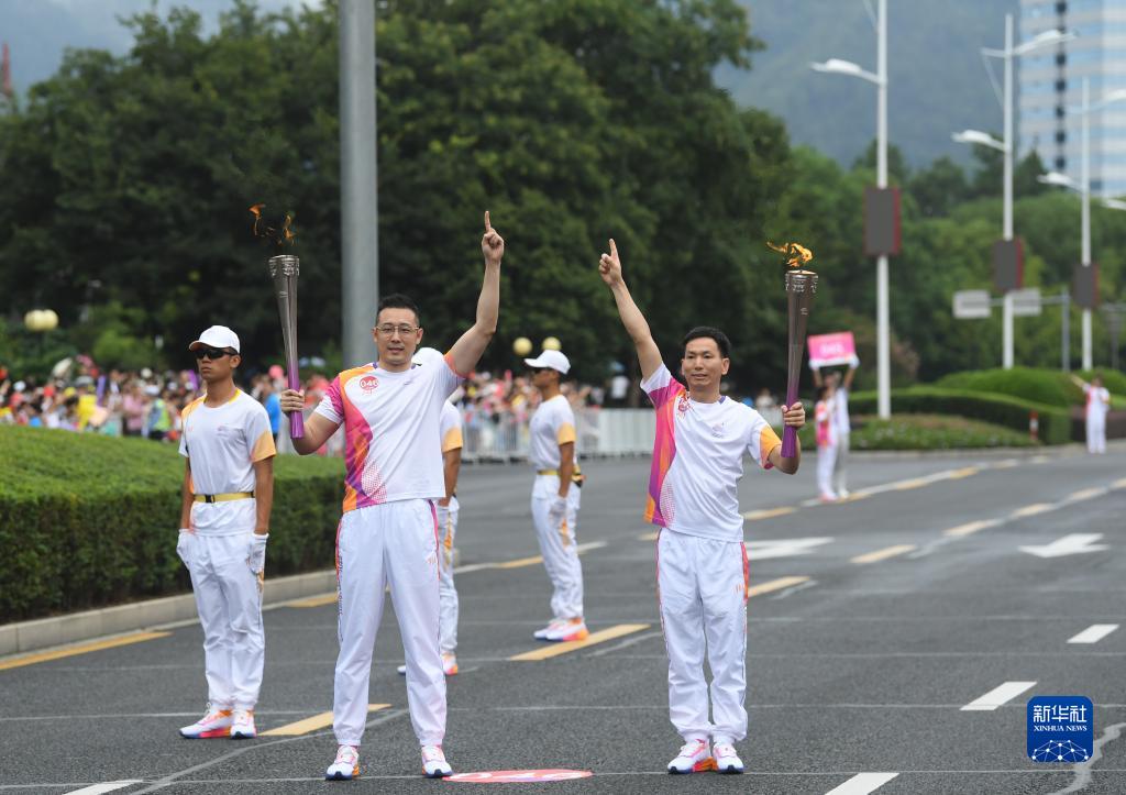 当日,杭州亚运会火炬在浙江省丽水传递。