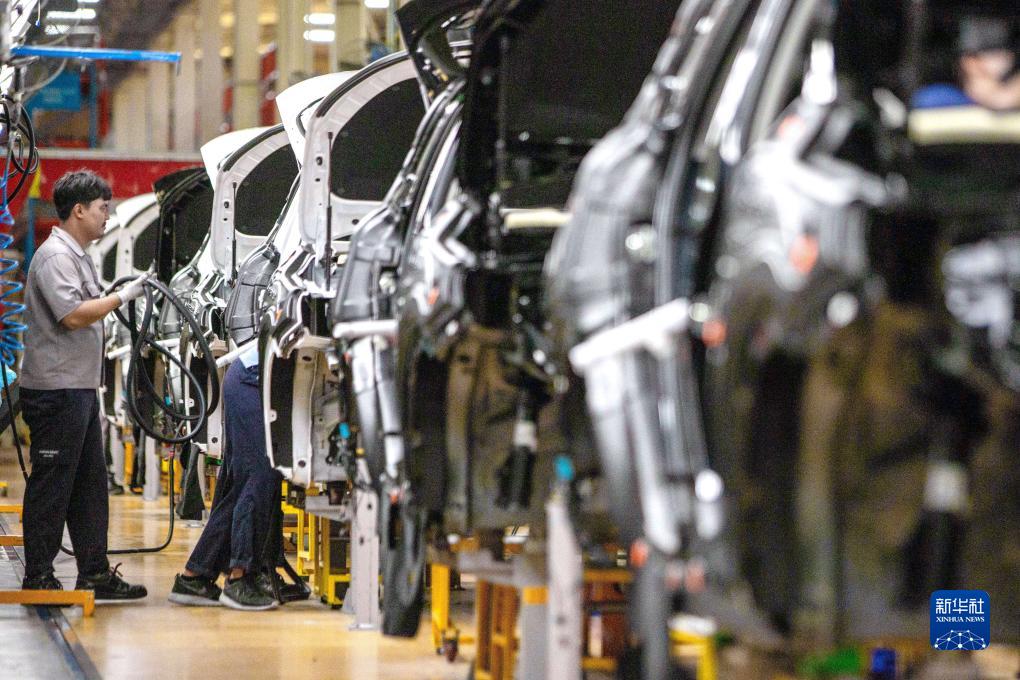 9月7日,在位于泰国春武里府的上汽正大公司汽车工厂,工人在生产车间内工作。