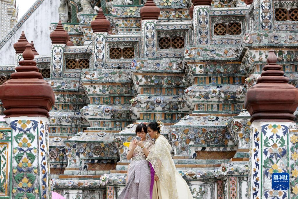 6月16日,游客在泰国曼谷郑王庙景区游览(资料照片)。