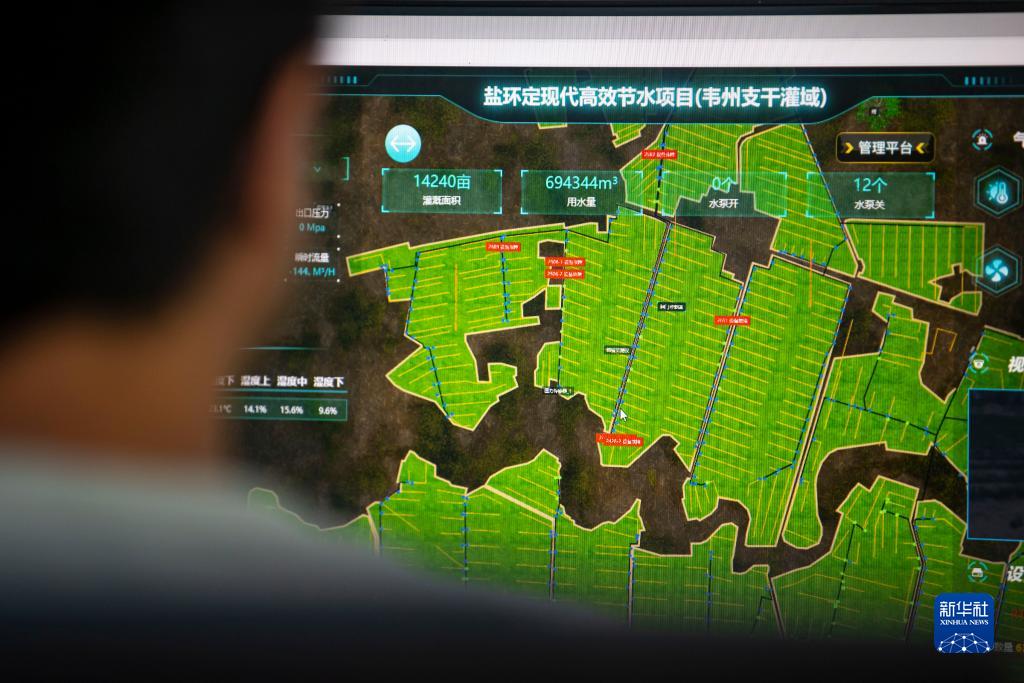 宁夏吴忠市同心县韦州镇,工作人员在展示节水灌溉运行管理信息化平台(9月14日摄)。