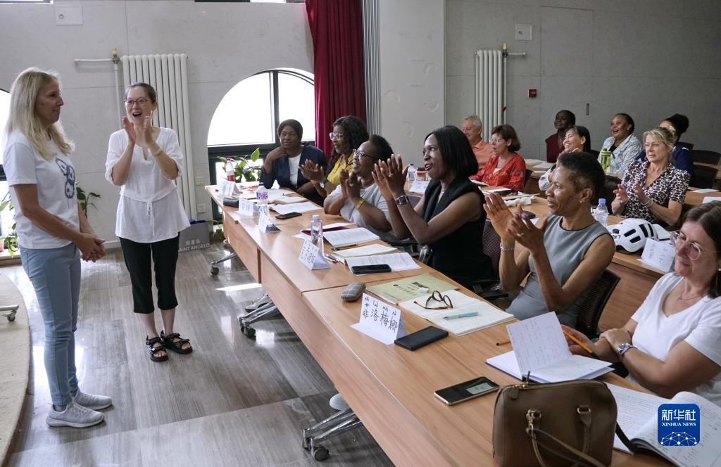 外籍居民在北京市朝阳区麦子店街道的社区新时代文明实践所参加汉语培训班(9月11日摄)。