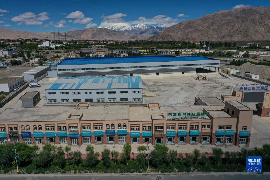 位于新疆塔什库尔干塔吉克自治县的中巴边民互市贸易区(8月28日摄,无人机照片)。