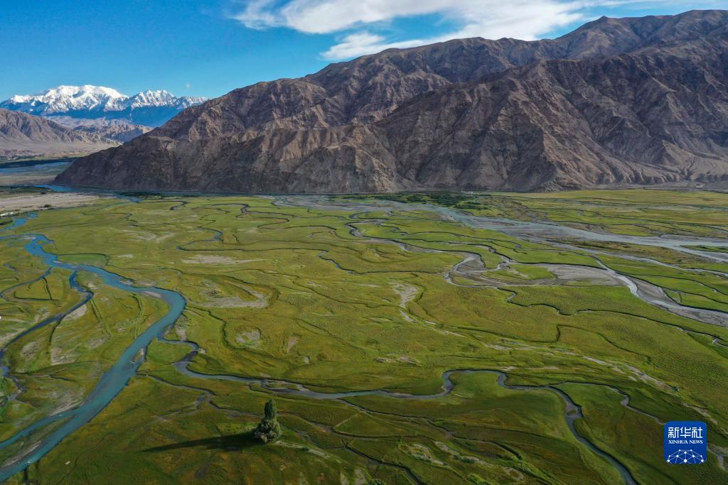 新疆塔什库尔干塔吉克自治县金草滩湿地景观(8月28日摄,无人机照片)。
