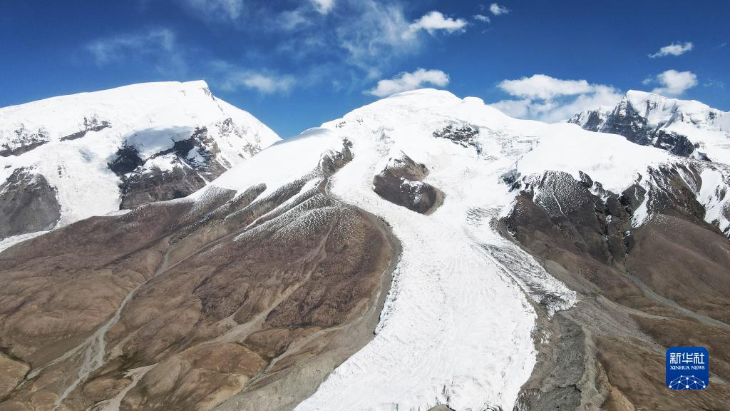 这是在新疆塔什库尔干塔吉克自治县慕士塔格冰川公园拍摄的冰川景观(9月6日摄,无人机照片)。