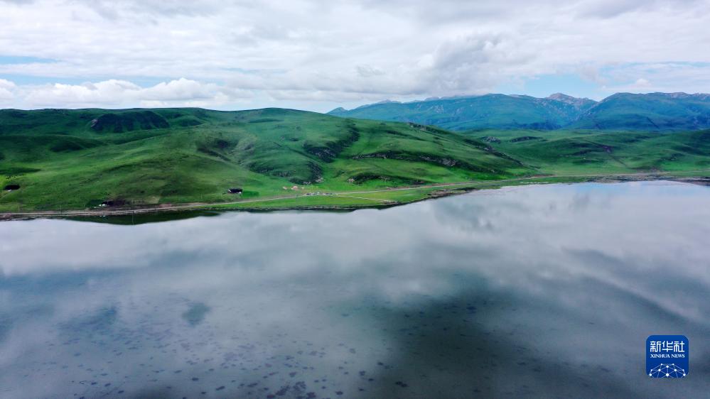 这是甘肃尕海则岔国家级自然保护区尕海湖的景色(7月7日摄,无人机照片)。