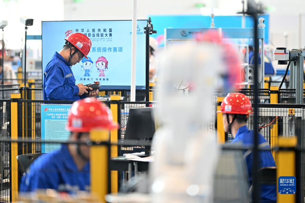 9月16日,选手参加工业机器人系统操作项目比赛。