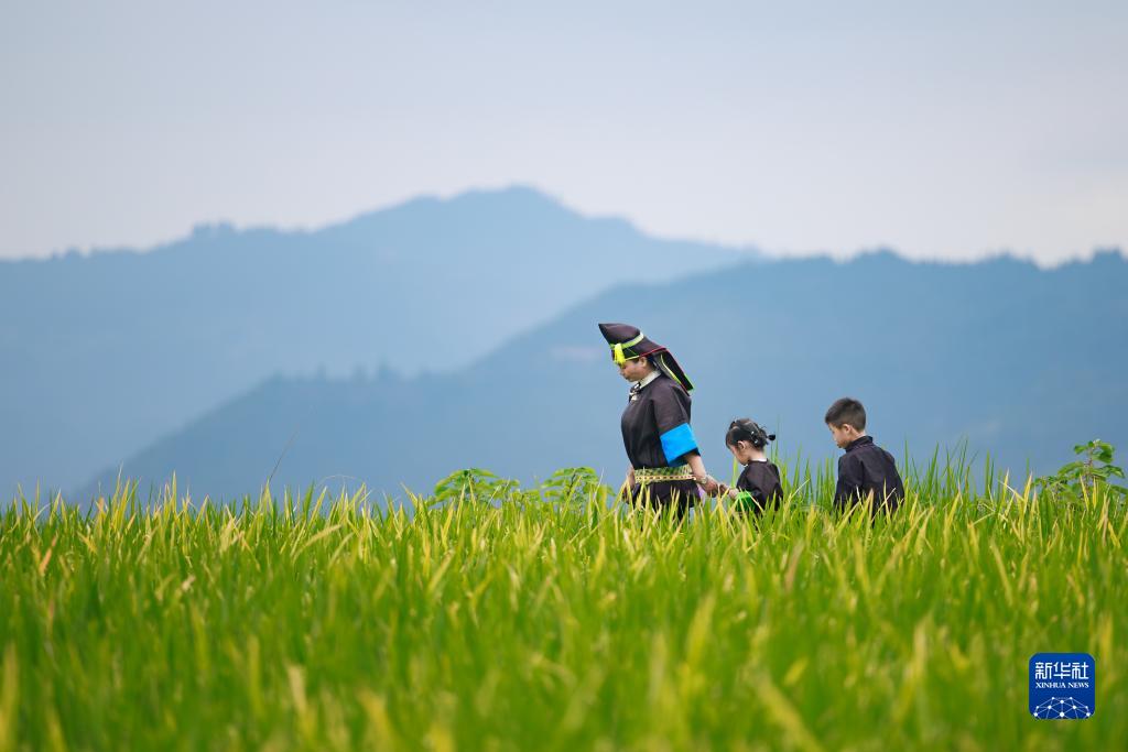柳吉小学教师王章艳(左)在去往学生龙运平(右)和龙运凡家中家访的路上(9月7日摄)。