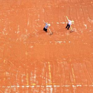 9月16日,湖北省恩施土家族苗族自治州宣恩县珠山镇的农民在晾晒收获的高粱(无人机照片)。