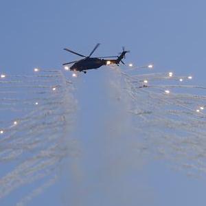 9月16日,陆军“风雷”飞行表演队直-19武装直升机进行飞行表演。
