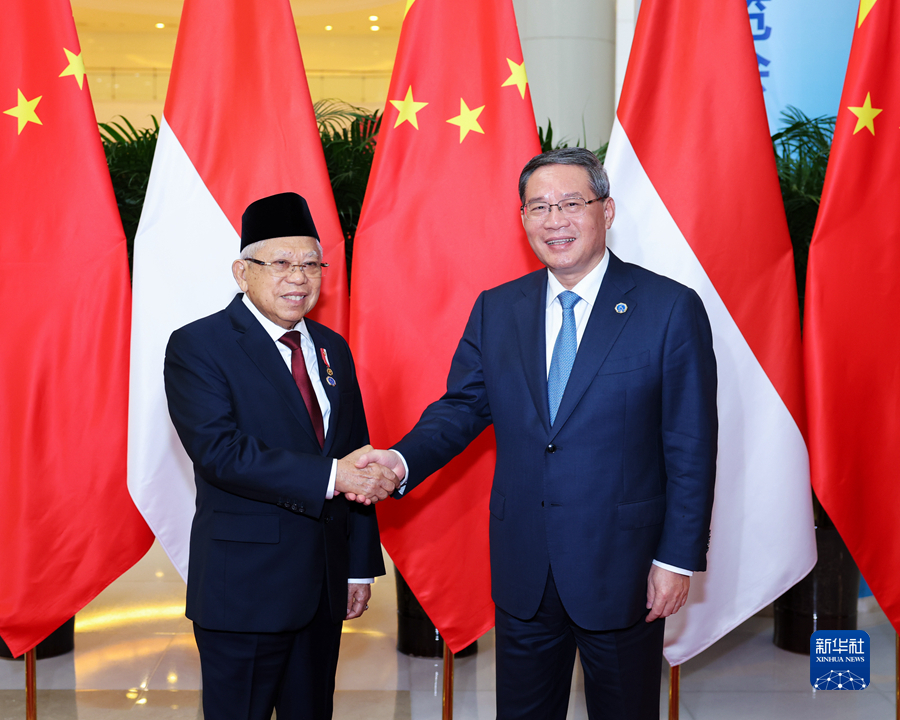 9月16日下午,国务院总理李强在广西南宁会见来华出席第二十届中国-东盟博览会的印度尼西亚副总统马鲁夫。