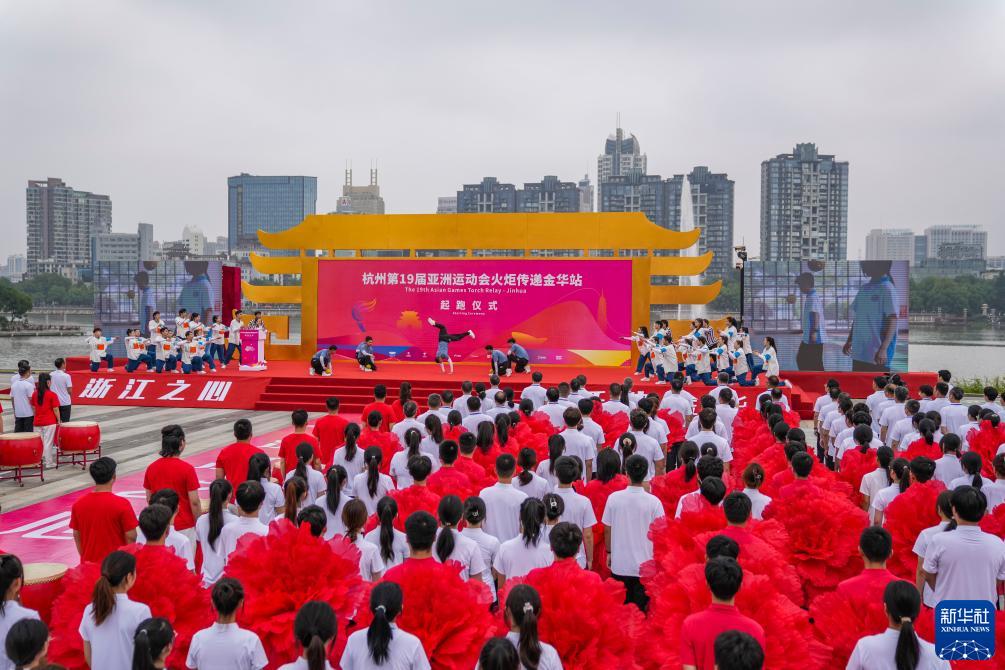 这是杭州亚运会火炬传递金华站起跑仪式现场(9月17日摄)。
