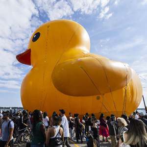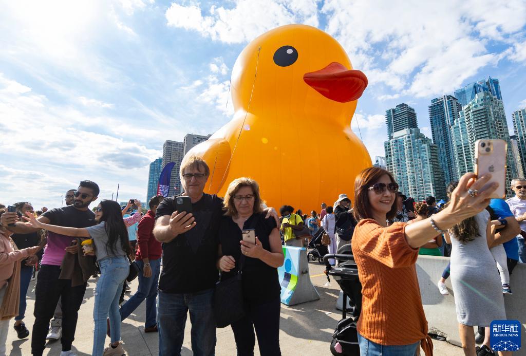 当日,一只6层高、重约13.6吨(30000磅)的橡皮“大黄鸭”亮相多伦多,吸引了众多游人。这是“大黄鸭”继2017年后再次来到多伦多,从9月16日至17日向公众开放。