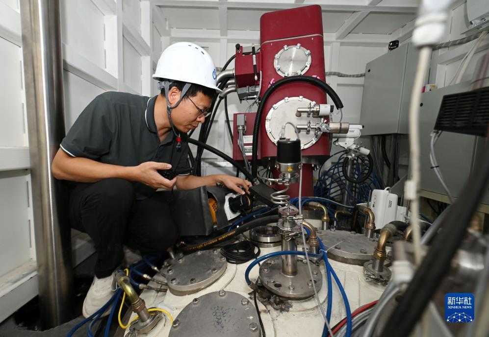 9月15日,在聚变堆主机关键系统综合研究设施(CRAFT)园区内,工作人员在偏滤器部件工程测试平台进行参数调试。