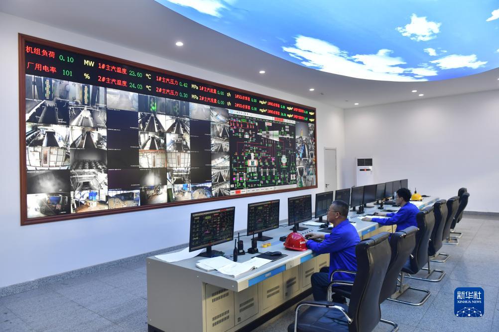 9月15日,丹东铭笙生物质发电有限公司的工人在主控室监控设备运行情况。丹东铭笙生物质热电联产项目主要利用水稻、玉米等作物废弃秸秆和废木材进行焚烧发电和供热。