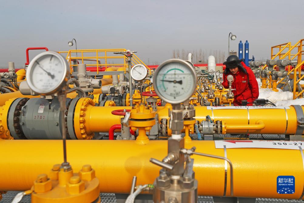 在盘锦辽河油田储气库群,工人在作业区巡检(2021年2月3日摄)。