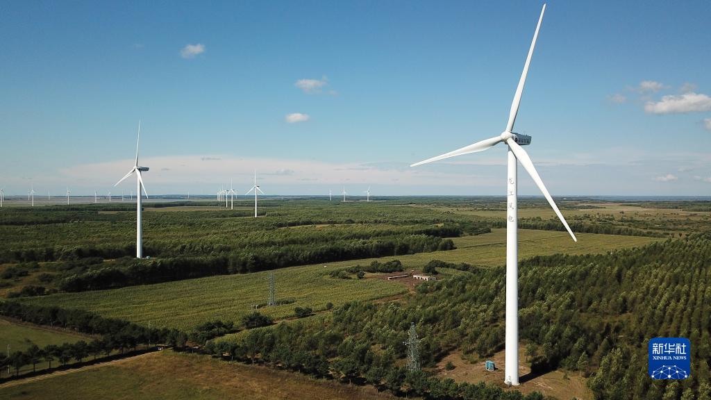 位于黑龙江省大庆市一风电项目的风场(2021年9月8日摄,无人机照片)。