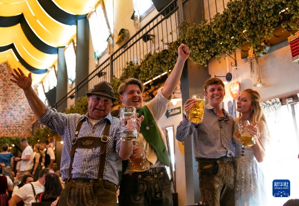 9月16日,人们在德国慕尼黑啤酒节上享用啤酒。