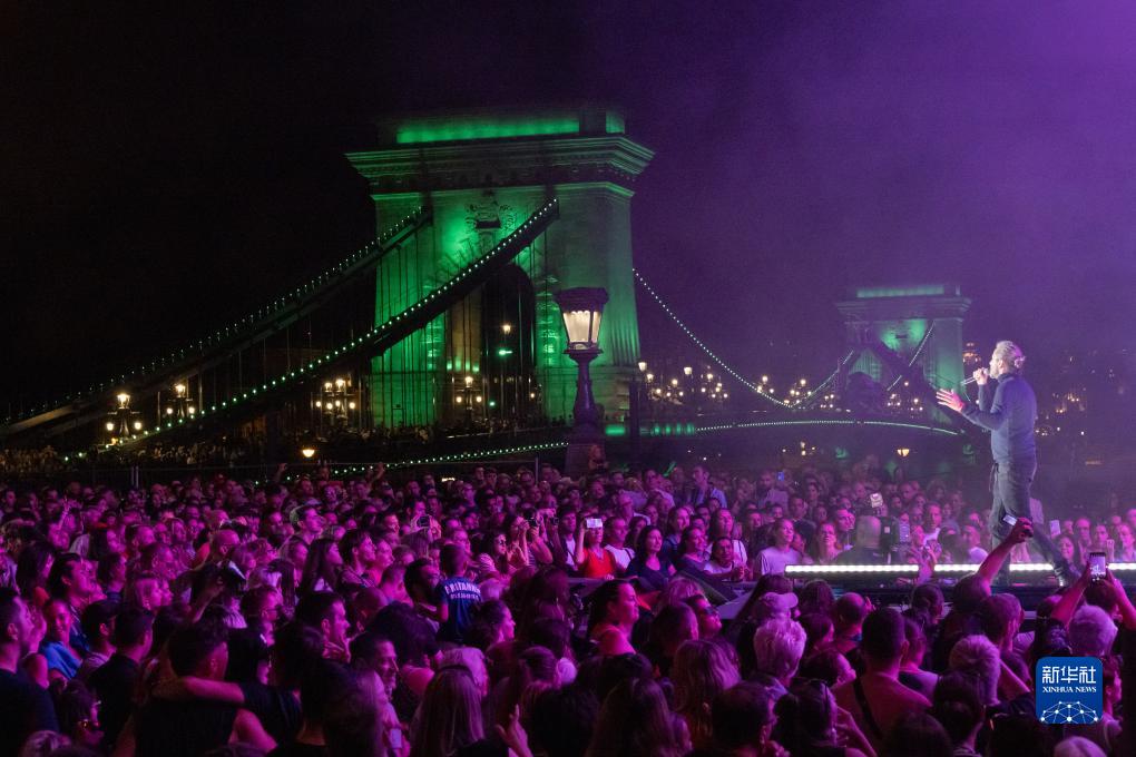 9月16日,人们在匈牙利首都布达佩斯著名地标链子桥畔欣赏音乐会。