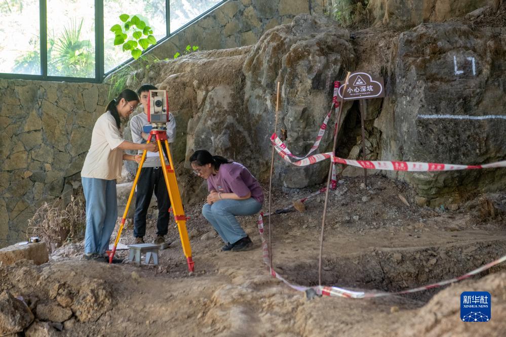 9月14日,考古发掘队队员在龙骨坡遗址工作。