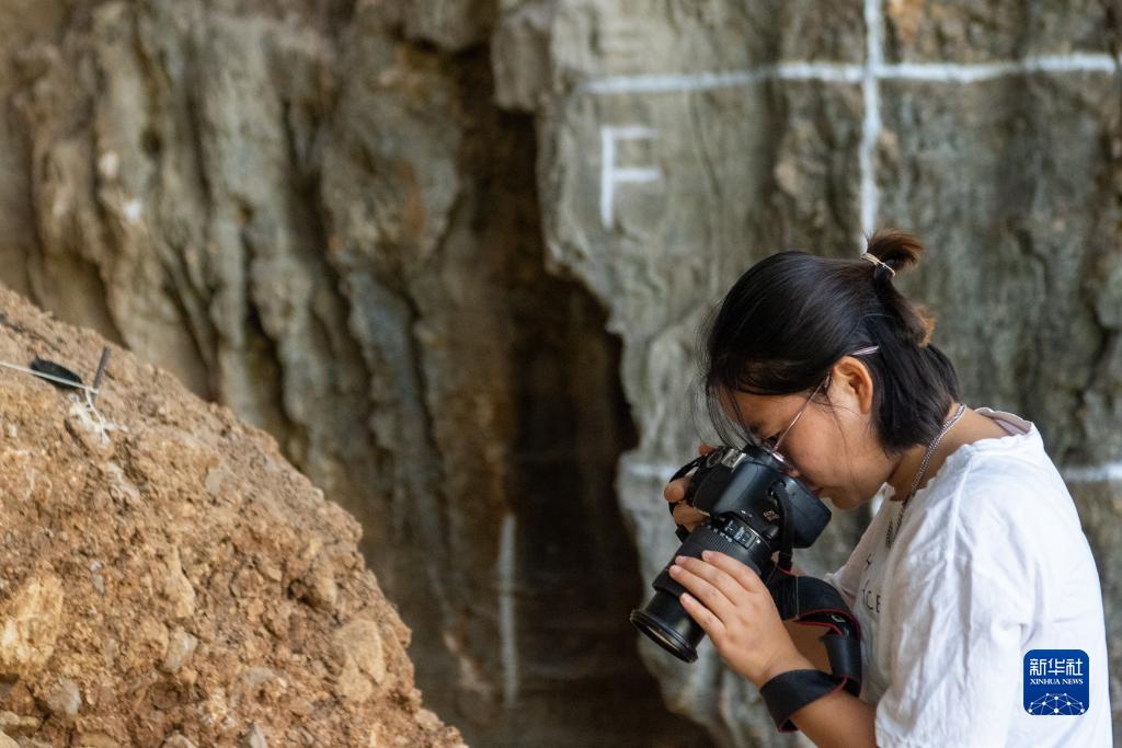 9月14日,考古发掘队队员在龙骨坡遗址工作。