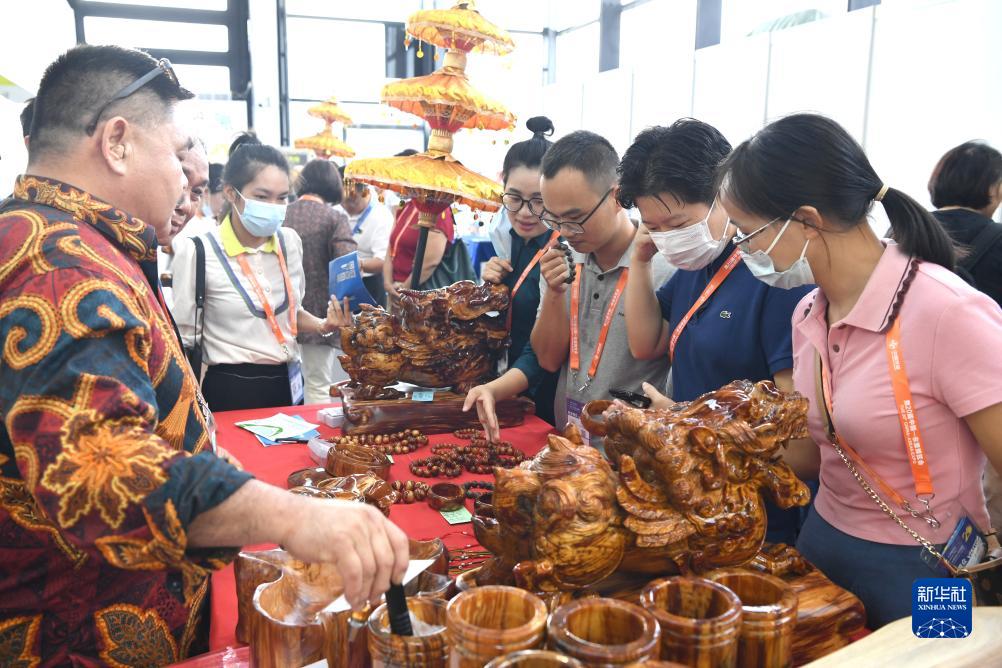 9月18日,在南宁国际会展中心,观众在印度尼西亚商品馆选购商品。
